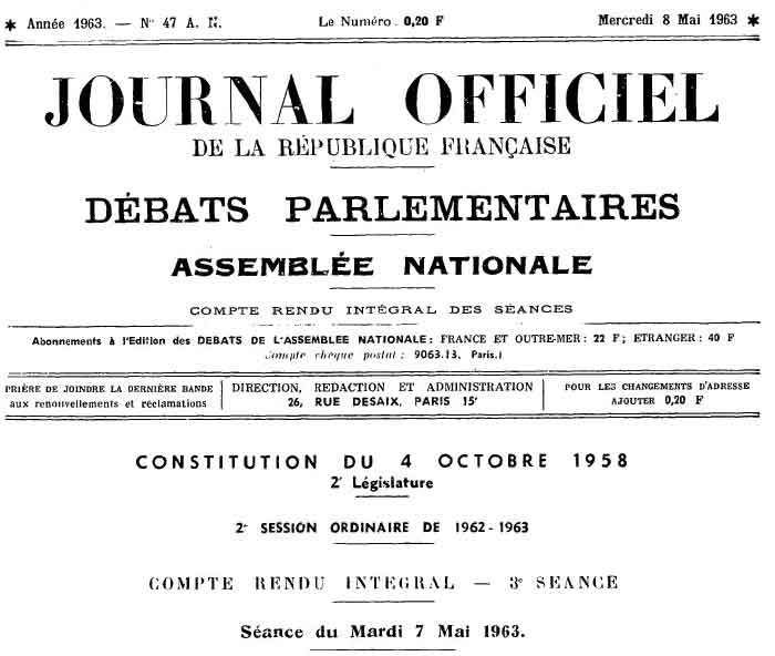 Cette mise au point ayant été faite par Monsieur DE BROGLIE, Secrétaire d'Etat aux Affaires Algériennes et publiée au Journal Officiel de la République Française le 24 novembre 1964 page 1847.