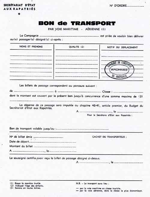 aux rapatriés pour leur délivrer des bons de transport. Il est décidé de porter ce