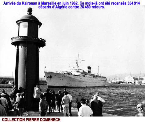 Ce long passé, Micheline Taillefer le porte en elle, le 20 juin 1962, en montant dans le Kairouan. Normalement, ce grand paquebot blanc de la Compagnie de navigation mixte à la silhouette élégante transporte des touristes et des vacanciers. En moins de vingt heures, il rallie la métropole, depuis Alger ou Oran. Cette fois, ses couloirs sont chargés de rapatriés fuyant la violence.