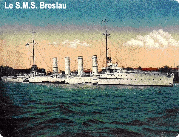 Le S.M.S. (Seiner Majestät Schiff ; Navire de Sa Majesté Breslau, ndlr) commandé par le capitaine de frégate Kettner ouvrit le feu sur plusieurs