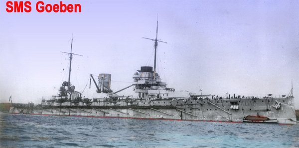 Le 4 Août à 6 heures, le Goeben commandé par le capitaine de corvette Ackermann se