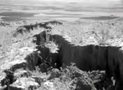 A bord d'un hélicoptère de Gyrafrique, notre envoyé spécial Pierre Vals a pu survoler la région de Bèni-Rached et photographier les crevasses que le tremblement de terre a creusées dans la terre rouge. C'est la quelle étaient le plus profondes : on a mis plusieurs jours à se rendre compte que Bèni-Rached, le " douar maudit ", avait été l'épicentre du séisme. Dans ce village, le plus important d'une région agricole qui couvre 15.000 hectares, on dénombra 307 morts, qu'il fallut transporter au cimetière dans des paniers à dos de mulets - la religion musulmane exigeant en effet que les morts soient enterrés le plus rapidement possible. Les habitants des douars les plus proches durent parcourir 10 kilomètres à travers les montagnes pour porter secours aux survivants.