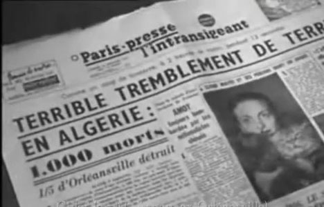 En quelques secondes, à Orléansville, dans la nuit du 09 septembre, 1500 personnes sont tombées du sommeil dans la mort. Plus de 1200 blessés ont été retrouvées sous les ruines de leurs maisons, détruites par le plus terrible tremblement de terre qu'ait jamais subi l'Algérie. 60 000 sans-abris à 150 km. A la ronde autour d'Orléansville vivent dans campements de fortune, sans gaz, sans électricité, sous la menace des épidémies. C'est Radio Alger qui a donné l'alarme. Aussitôt, les secours se sont organisés. Chaque jour, 2 000 Algériens ont offert leur sang. L'armée, les pompiers, la police et la gendarmerie ont travaillé quarante heures durant à retirer des décombres les blessés et les morts. Un pont aérien s'est établi entre Orléansville et Alger où toutes les quarante minutes, un convoi de blessés était dirigé vers l'hôpital Mustapha. Dans toute la France, en signe de deuil, les drapeaux ont été mis en berne. Commencé en Algérie, le mouvement de solidarité s'est étendu à tout le pays et bientôt au monde entier.