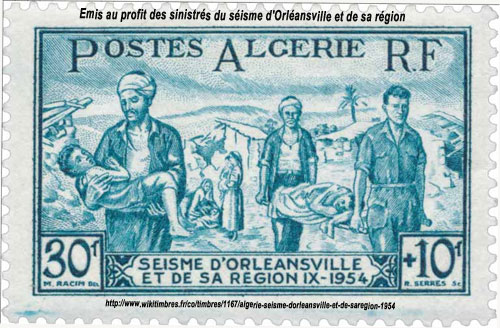 En 1934. Orléansville avait été touchée par les secousses séismiques ressenties, des le I3 juillet et les 7 et 8 septembre, sur toute la zone littorale entre Alger et Ténès, la partie occidentale de la Mitidja, la région de Dahra, au Zaccar, la vallée du Chéliff, ainsi que dans le massif de I'OUARSENIS et le nord du Sersou, Saint-Cyprien-des-Attafs, Watignies et Carnot avaient été les plus éprouvés. Orléansville avait encore été secouée les 3 et 7 novembre de la même année. Elle l'avait été antérieurement et le fut encore après.