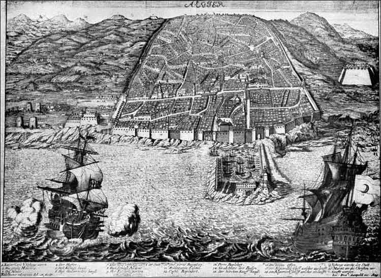 (6) La garde de la ville d'Alger est confiée à la tribu des Biscaras ou Biscris (originaires de Biskra), que leur Emir répartit tous les soirs dans les rues où ils se couchent devant les boutiques des marchands soit sur des nattes, des matelas ou sur le pavé. Ces boutiques sont sur leur surveillance spéciale ; et si par hasard il arrive que l'on parvienne à y voler, ils répondent de la valeur des objets enlevés, paient et sont sévèrement punis. Shaw http://www.algerie-ancienne.com/Salon/Turque/023.htm