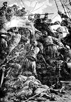Tout ce qui flottait fut déclaré de bonne prise, et aucun pavillon ne fut à l'abri de l'insulte ; le respect religieux qu'inspirait aux anciens corsaires le chef de l'Islam n'était pas fait pour arrêter des hommes qui se souciaient encore moins de leur nouvelle foi que de celle à laquelle ils venaient de renoncer ; ils devinrent donc un des plus grands éléments de désordre ; mais, en même temps, ils furent la force vive de la régence. Ils apportèrent, dans l'exercice de la piraterie, l'ardeur, l'activité et l'âpreté au gain des races septentrionales ; grâce à leurs connaissances nautiques, ils introduisirent d'utiles modifications dans les navires barbaresques ; sachant que, s'ils étaient pris, ils n'avaient pas de grâce à espérer, ils donnèrent l'exemple d'un courage indomptable, et furent l'âme de la résistance lors des attaques européennes.