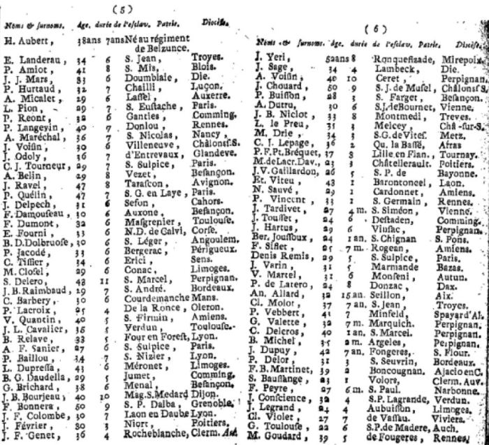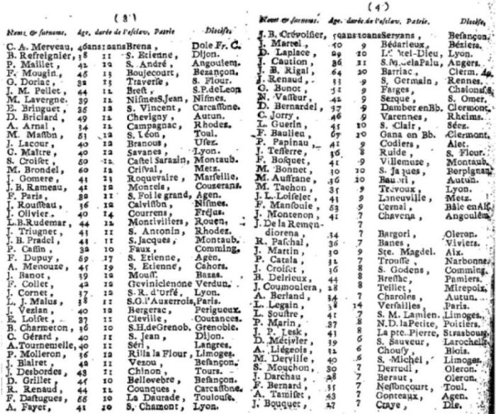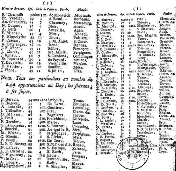 | Liste d'esclaves français rachetés en 1785 à Alger par l'ordre de la Trinité (Extraits). | |
