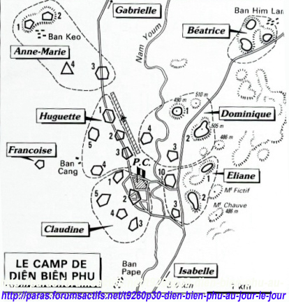 Et pour boucler la périphérie, des boyaux où s’entassent pêle-mêle légionnaires de la 13e D.B.L.E., blessés en état de marcher, Thaïs, Algériens, voire des P.I.M. qui ont pris une place au combat.