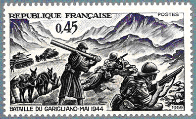 Protégées par des écrans fumigènes, les troupes françaises traversent le Garigliano à la faveur d'une étroite tête de pont organisée par les troupes britanniques et se lancent à l'attaque dans la nuit du 11 mai. En dépit de la surprise, les troupes allemandes s'accrochent sur leurs positions et au soir du 12 mai, le bilan est maigre, la rupture du front n'a été obtenue nulle part. " Que de pertes ! Le champ de bataille était couvert de morts et de blessés. Deux sections entières du 4ème Tirailleurs marocains avaient été surprises au cours de leur assaut sur les pentes du Cerasola par des lance-flammes, les tirailleurs affreusement carbonisés ". A l'aube du 13 mai, le CEF repart à l'attaque. En début d'après-midi, une brèche de 9 km est ouverte dans le dispositif allemand qui n'a plus de réserves à opposer à l'assaut français. Cette fois, l'élan est donné. De leur côté, les Américains fonçaient le long de la mer afin de tendre la main à leurs troupes bloquées à Anzio. Les Britanniques de la 8ème armée et les Polonais s'emparaient enfin de Cassino qui ne présentait plus aucun intérêt maintenant que les Français tenaient les hauteurs. Témoin des faits, Bernard Simiot, qui a troqué l'habit du colon pour celui d'officier de goumiers, a laissé un tableau exalté de cette période : " Malgré la fatigue (…) les soldats du CEF combattaient et marchaient sans répit, ivres de poursuite, de bruit, de soleil, de victoire. (…) Le visage plâtré de terre, on les voyait cheminer sur les routes (…) secouant leur misère pour acclamer Juin et ses généraux passant en trombe dans les chemins défoncés qui menaient aux premières lignes ". C'est au cours d'une de ces reconnaissances en première ligne que Juin manque d'ailleurs de se faire tuer dans une embuscade comme l'indique le récit suivant :