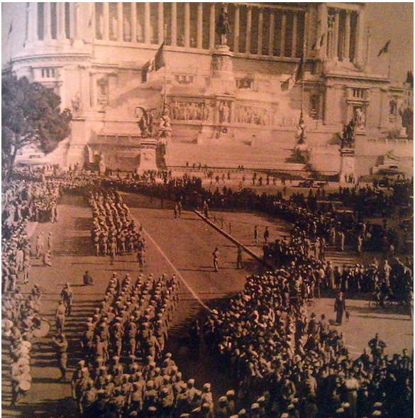 La marche vers Rome fut parfois assimilée à une véritable course, chaque commandant d'armée revendiquant pour lui-même l'honneur d'entrer avec ses troupes dans la " Ville Eternelle ". Alexander entendait voir l'armée britannique mise à l'honneur mais ce sont les Américains qui remportèrent la compétition. Louis Bertheil souligne d'ailleurs que ce ne fut pas une victoire " à la loyale ", Clark organisant de savants embouteillages pour bloquer le 13ème Corps britannique. Le 4 juin au soir, la 88ème Division d'infanterie U.S entrait à Rome. Le général Clark fit honneur à Juin en le prenant dans son véhicule de commandement. C'était un triomphe mais un triomphe incomplet. En cherchant à tout prix à entrer dans Rome, les Américains venus d'Anzio avaient manqué leur jonction avec les Britanniques. Cela avait permis aux troupes allemandes d'opérer leur retraite sur près de 250 Kilomètres sans voir leurs lignes de communication coupées. Les bombardements aériens avaient fait des dégâts mais les alliés étaient passés à côté d'une victoire complète comme en Tunisie. De plus, ce triomphe était bien éphémère car le débarquement qui se produisit en Normandie le surlendemain éclipsa complètement cet événement. Surtout, il posait désormais pour le C.E.F la question de l'utilité de sa présence dans la péninsule. De Lattre ne cachait pas qu'il souhaitait au plus vite disposer des unités du CEF pour les engager dans le débarquement de Provence prévu en Août.