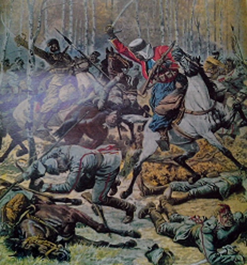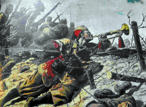 La presse française ne manque pas de vanter les qualités guerrières des troupes venues des colonies comme le montrent ces deux illustrations tirées du Petit Journal. La représentation des charges furieuses des Spahis (28 novembre 1916) ou du sacrifice des zouaves et des tirailleurs (Août 1915) devaient rassurer l'opinion publique sur le degré d'implication des colonies et le loyalisme de leurs habitants. On joue sur le choc et l'émotion, la charge des Spahis, est ainsi appelée la " fantasia sanglante ", la recette reste la même aujourd'hui.