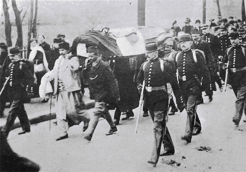 Obsèques du premier soldat musulman tué en France. La Garde républicaine rend les honneurs et escorte le cercueil. Source : historia magazine, n°119, p. 642