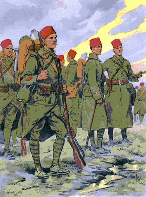 Quand elles débarquent, ces formations suscitent autant l'admiration que l'étonnement. Tout comme pour les Hindous de l'armée britannique, l'accueil réservé aux militaires indigènes est plutôt cordial et surprend parfois les Musulmans. Pour les Français, ces combattants de l'Empire sont bien plus exotiques que le " piou-piou" ordinaire. Les tenues ont en effet peu évolué depuis la guerre de 1870. Les zouaves et les tirailleurs arborent ainsi de superbes uniformes hérités des tenues " orientales " des premiers régiments de l'armée d'Afrique. Montés sur leurs petits chevaux arabes, les Spahis sont magnifiques et offrent le spectacle d'une cavalerie légère sans égale. Ne parlons pas de la Légion qui est déjà un mythe pour le monde entier.