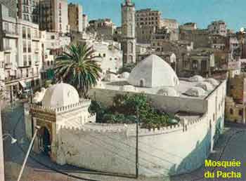 mosquée du Pacha (1796) et la petite mosquée de Kargentah, le minaret de la mosquée Sidi el Haouari et la mosquée Ben Nacef (1801), notre église Saint-André.