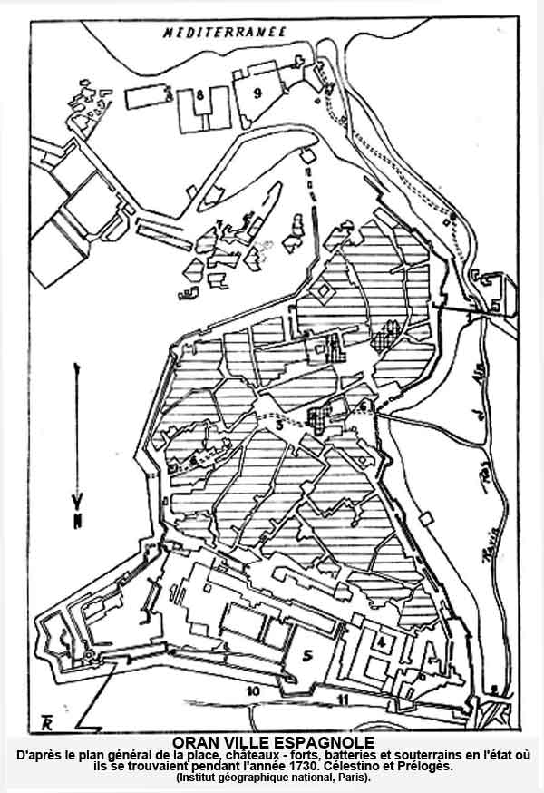 départ définitif, Oran a 9 000 habitants en 1738, dont 1 600 déportés, 800 alliés maures, 5 500 soldats. En 1785, ils sont 12 000 ; quelques seigneurs exilés possèdent de riches demeures dans la Casbah. Pestes et disettes se succèdent.