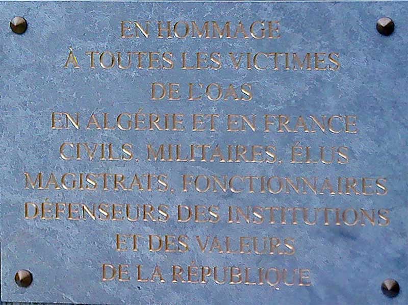 Monsieur le maire de Paris, Bertrand Delanoë, le jeudi 06 octobre 2011 a inauguré une stèle à la mémoire des victimes de l'OAS au cimetière du Père-Lachaise. Le 8 février 2011 le Conseil de Paris avait voté à l'unanimité en faveur de la pose de cette stèle.