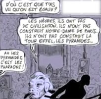 Sur fond de racisme ordinaire, décliné à la fois sur le thème : " des bougnoules qui nous ont foutu dehors ", avec un arrière-fond " d'inégalité des races "…