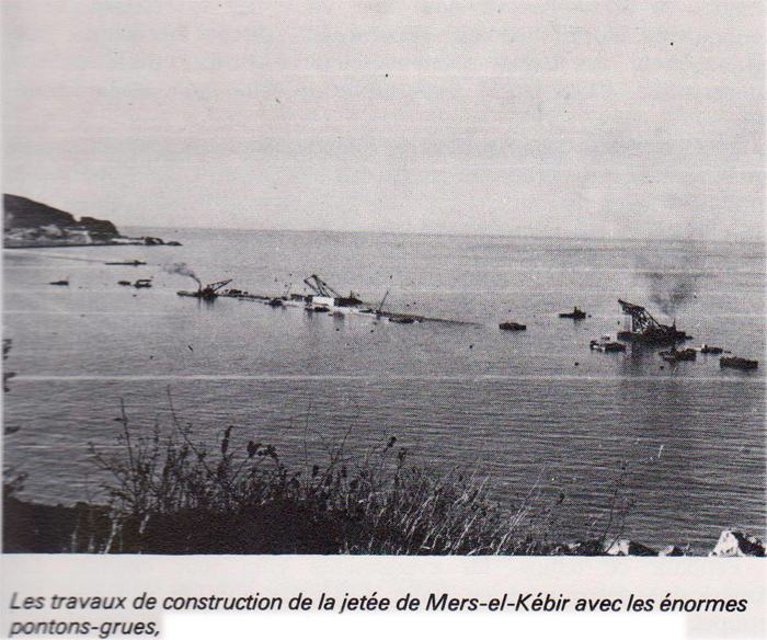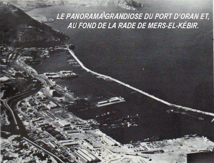 Pourtant cet excellent abri naturel - le meilleur de la cote ouest algérienne - avait déjà plusieurs siècles d'histoire, au cours desquels les Espagnols y avaient bâti les forts du Santon, de Mers-el-Kébir et de la Santa-Cruz. Trois ouvrages, en pierres fauves admirablement assisées, qui commandaient la mer alentour. Apres eux, les Français envisagèrent, des 1850, d'utiliser cette rade magnifique, et la ville d'Oran, toute proche, y fit déborder, un temps, un peu de l`activité de son propre port. Mais c'est le 12 avril 1939 qu'un décret-loi décida de la création à Mers-el-Kébir d'une base navale de première importance... En 1939. - Juillet 1940. Le nom de Mers-el-Kébir éclate à travers le monde comme un coup de tonnerre. Nos allies de la veille tirent sur nos navires de guerre. Certains d`entre eux s'échappent en ripostant, d'autres sont coulés. Le cuirassé " Bretagne " se retourne dans le port avec son équipage, et le modeste cimetière voisin se remplira de croix blanches - pieusement fleuries à chaque anniversaire. Tel fut le baptême de la Base de Mers-el-Kébir.