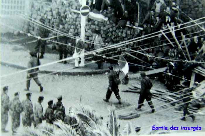 Et, le 28 janvier, coup de théâtre : le général Challe et le délégué Delouvrier se sont retirés au PC de La Reghaïa pour retrouver " la liberté de commandement ". Delouvrier adjure les insurgés dans un discours qui se veut pathétique : " Je vous laisse, Algérois, le dépôt le plus sacré qu'un homme puisse avoir : sa femme et ses enfants. Veillez sur Mathieu, mon dernier fils. Je veux qu'il grandisse, symbole de l'indéfectible attachement de l'Algérie à la France ". Le lendemain, le discours de de Gaulle sera plus " politique " : " Comment pouvez-vous douter que si, un jour, les Musulmans décidaient librement et formellement que l'Algérie de demain doit être unie à la France, rien ne causerait plus de joie à la patrie et à de Gaulle que de les voir choisir entre telle et telle solution, celle qui serait la plus française ? " Les chefs parachutistes, n'attendant que ces mots, sont relativement satisfaits et négocient une reddition " dans l'honneur " des chefs insurgés. Le 1er février, c'est la reddition du camp retranché de Lagaillarde. Les insurgés sortent ; les troupes leur rendent les honneurs.