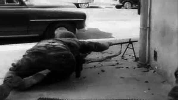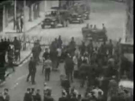 "L'insulte facile, usant de coups au moindre geste suspect, bousculant des femmes qui tentent de les empêcher de vider leurs tiroirs ou d'éventrer leurs matelas, les gendarmes et les C.R.S. ratissent immeuble après immeuble en subissant encore de-ci de-là le tir de quelques desperados qui s'attirent une intense réplique des mitrailleuses des blindés.".