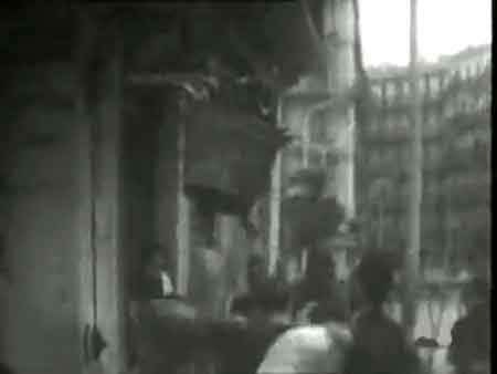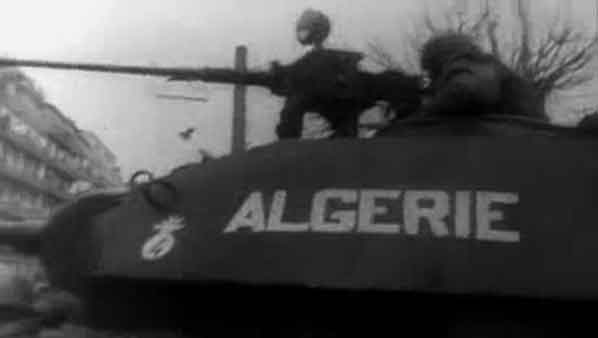 (4) La semaine des barricades désigne les journées insurrectionnelles qui se sont déroulée du 24 janvier au 1 février 1960 à Alger durant la Guerre d'Algérie (1954-1962). Son instigateur Pierre Lagaillarde (28 ans) député d'Alger (et ex-parachutiste) ainsi que ses acolytes Joseph Ortiz (47 ans), patron du bar algérois le Forum, et Robert Martel (42 ans), agriculteur de la Mitidja, organisent une manifestation au cours de laquelle une partie de la population algérienne d'origine européenne et musulmane2manifeste son mécontentement face à la mutation en métropole du général Massu, le 19 janvier 1960, sur décision du président Charles de Gaulle. Des barricades sont dressées rue Michelet et rue Charles Péguy. (wikipedia)