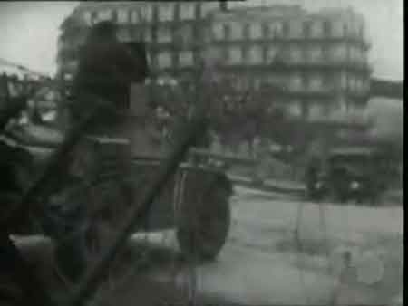 De toute part les blindés affluaient vomissant leurs nappes de feu et d'acier. Ils écrasaient les voitures en stationnement, montaient sur les trottoirs et éventraient les devantures des magasins.