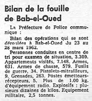 Aussitôt -et durant toute la journée- les forces militaires et de police affluèrent. Des milliers de soldats, gendarmes et C.R.S. encerclèrent le quartier Des barrages de fils de fer barbelés furent dressés. Bab-el-Oued était isolée du reste du monde…