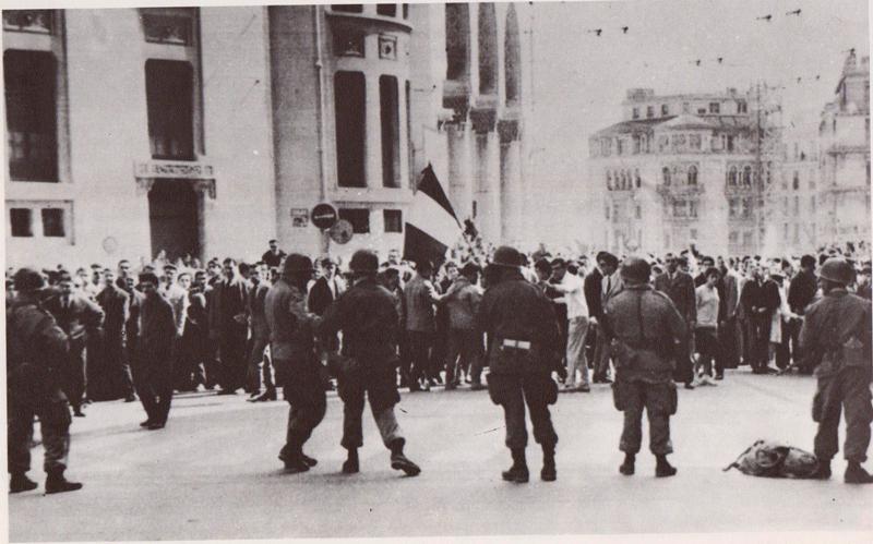 De celle-ci au square Bresson, des half-tracks et des automitrailleuses avaient pris place, tourelles tournées vers les terrasses des immeubles et le centre de la ville. Bd Carnot on trouvait des C.R.S. Plus près de la Grande Poste, des militaires de l'Infanterie et plus loin des Marsouins aux côtés desquels on voyait également des C.R.S. Rue Charles Péguy des camions militaires avaient été mis côte à côte, barrant la rue dans toute sa largeur.