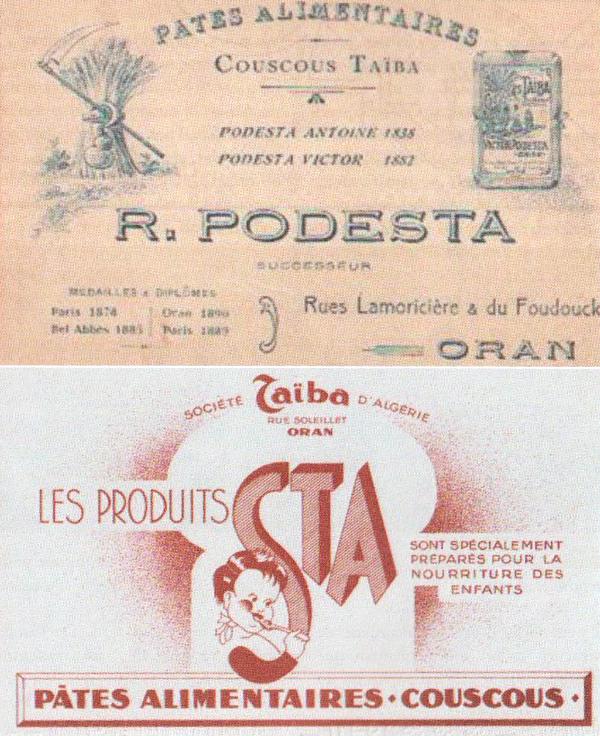 La grande famille des Podesta a le mérite de figurer parmi les pionniers au service de la France en Oranie. Dominique Antoine Podesta, dont la famille émigra d'Italie, créa en 1838, une petite fabrique de pâtes alimentaires Taïba bien connu à Oran, rues Lamoricière et du Fondouk. L'affaire fut ensuite reprise par son fils Victor en 1882 qui ajouta le fameux « Couscous Taïba » bien connu des Oranais.